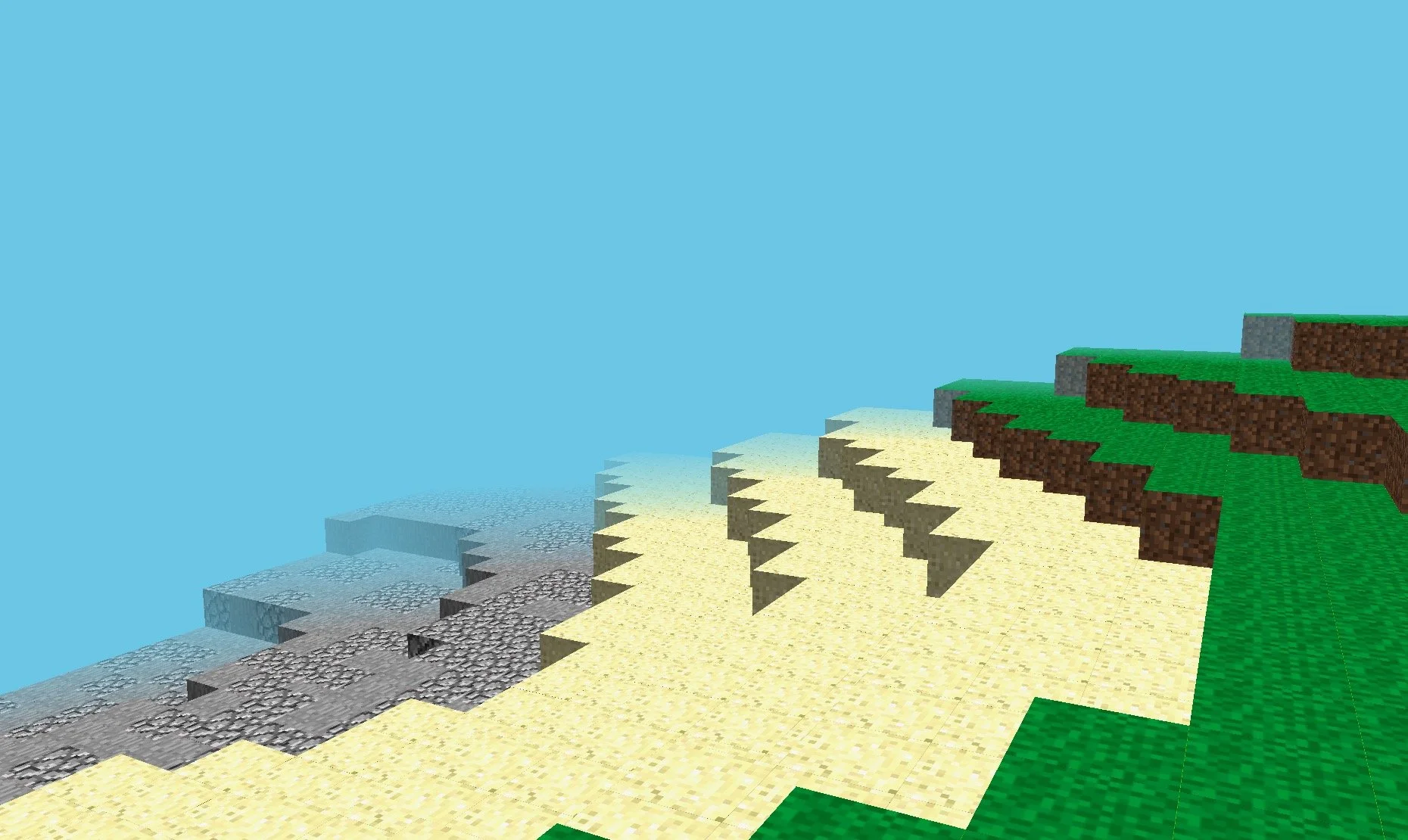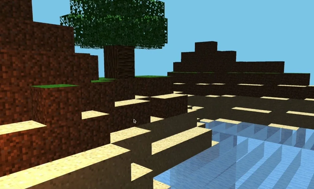 functional Minecraft game with infinite and random cube generation, key press movement, and gravity/water physics; responsible for water simulation, 2023 (see the code via my google drive link!)